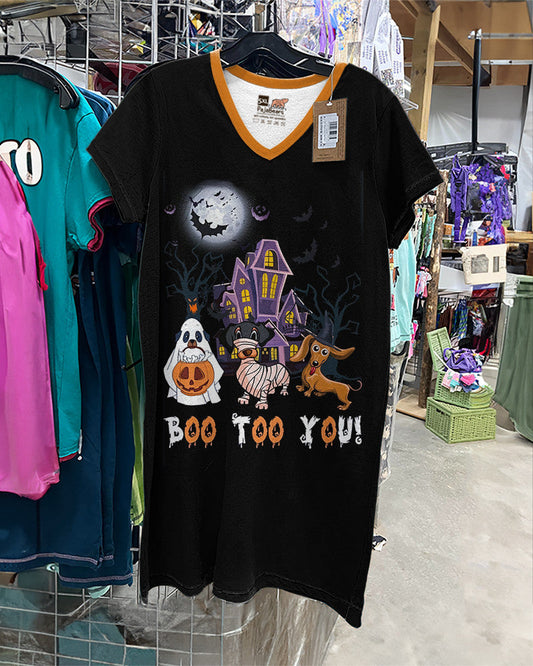 Halloween Dachshund Shineful V-neck Nightshirts Boo Too You