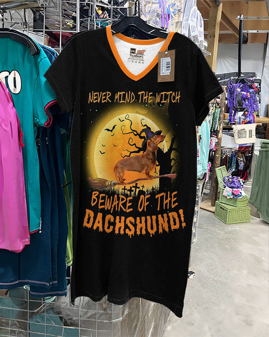 Halloween Dachshund Shineful V-neck Nightshirts Be Aware Of The Dachshund