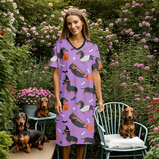 Halloween Dachshund Shineful V-neck Nightshirts 02