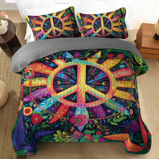 hineful All Season Quilt 3-Piece Floral Peace Sign Paradise