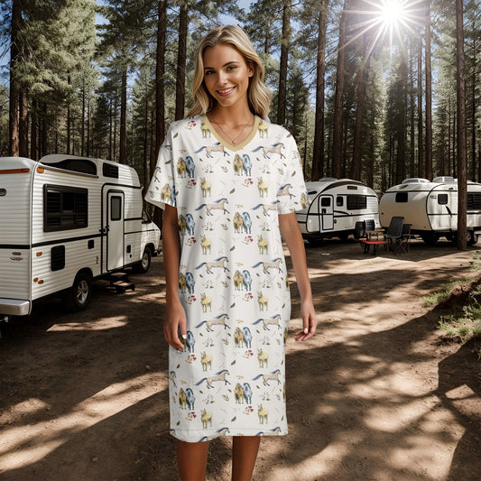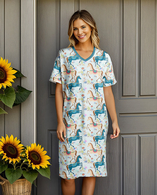 Horse Lovers Shineful V-neck Nightshirts NK07