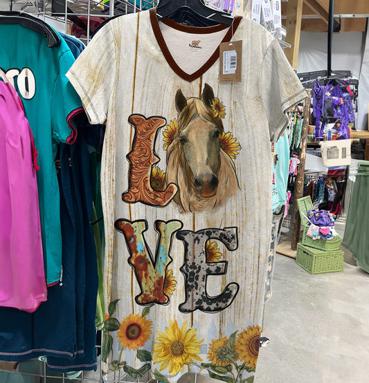 Horse Shineful V-neck Nightshirts Meadow Peaceful
