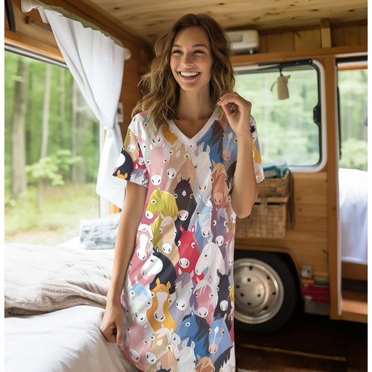 Horse Shineful V-neck Nightshirts Colorful Horse