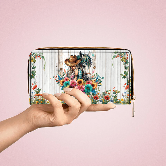 Horse Girl Leather Clutch Purse With Wristlet Strap Handle