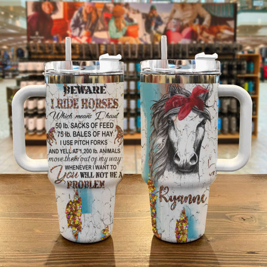Horse Shineful Tumbler Beware I Ride Horse Personalized