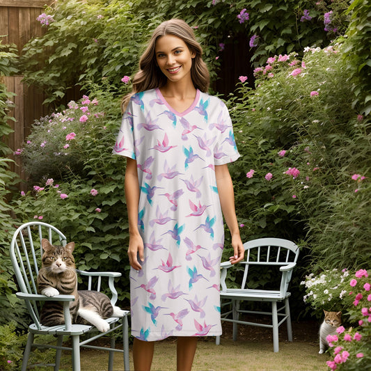 Hummingbird Shineful V-neck Nightshirts Graceful