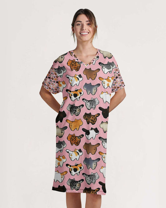 Otter Shineful V-neck Women's Nightshirts Cute Otters