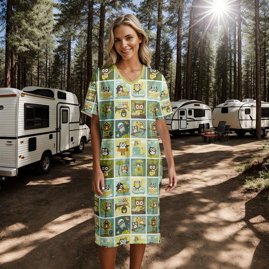 Owl Quilting Shineful V-neck Pixel Season Owls