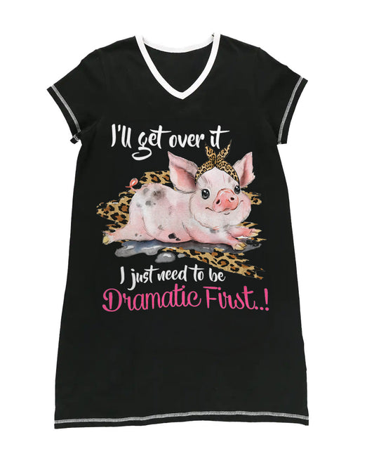 Pig Shineful V-neck Women's Nightshirts Dramatic Fist CLV1