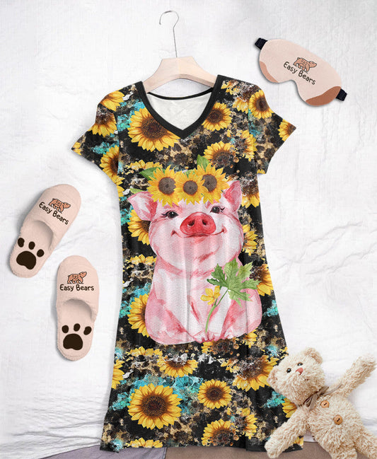 Pigs V-neck Nightshirts Sunflower Pig 2 styles