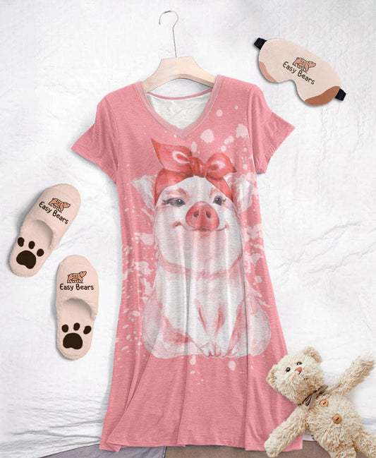 Pigs V-neck Nightshirts Lovely Pigs
