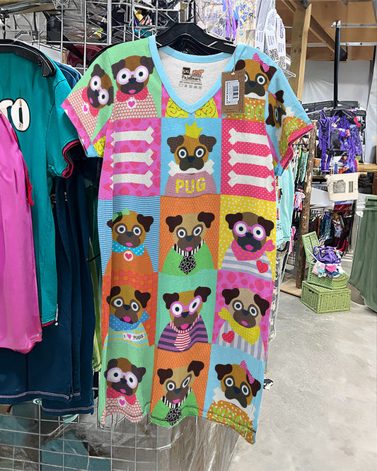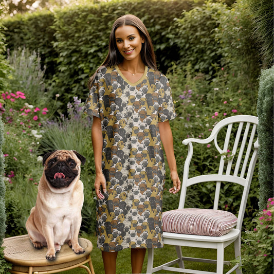 Pugs V-neck Nightshirt Social Pugs