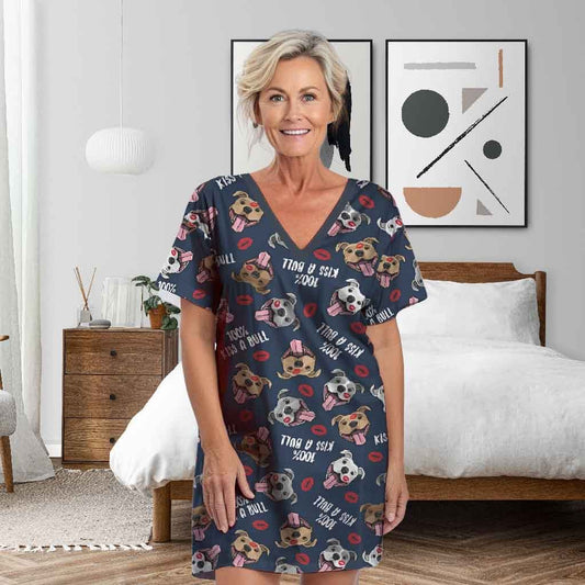Pit Bull Shineful V-neck Women's Nightshirts 100% Kiss A Bull