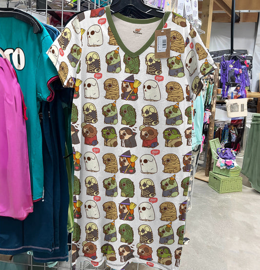 Pugs V-neck Nightshirts Adorable Spooky Pug