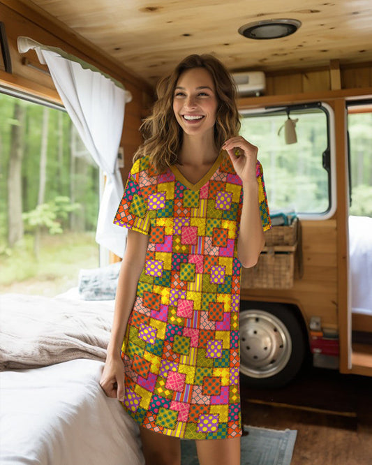 Quilt Shineful V-neck Nightshirts Colorful NK07