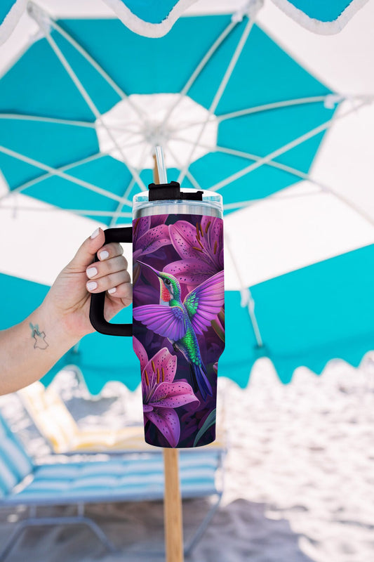 Shineful Tumbler Twilight Blooms: The Hummingbird's Evening Visit