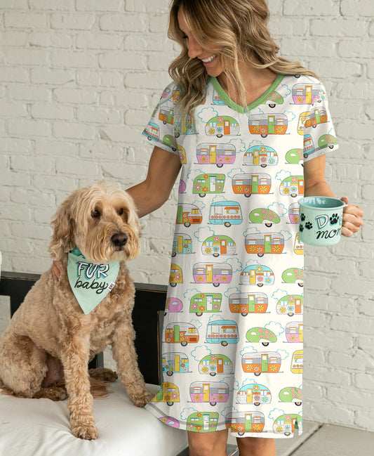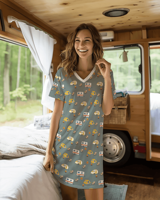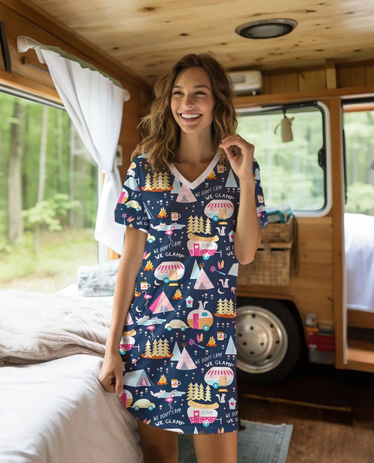 Campings V-neck Nightshirts We Don't Camp We Glamp C