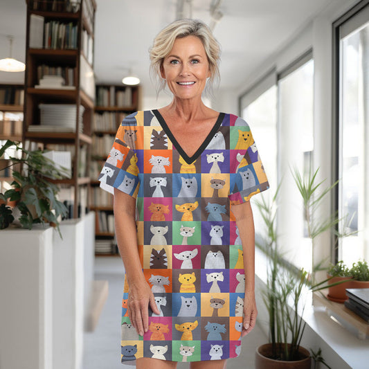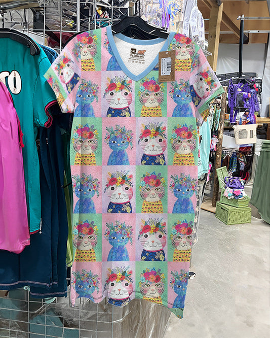 Cat Lover Shineful V-neck Nightshirts Funny Cat