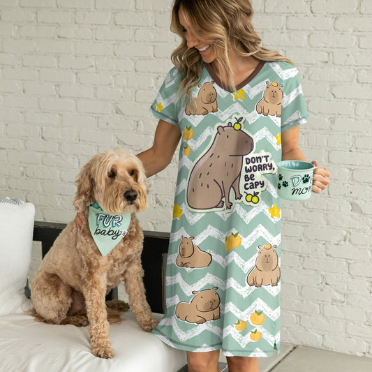 Capybara Shineful V-neck Nightshirts Capybara Lover