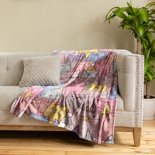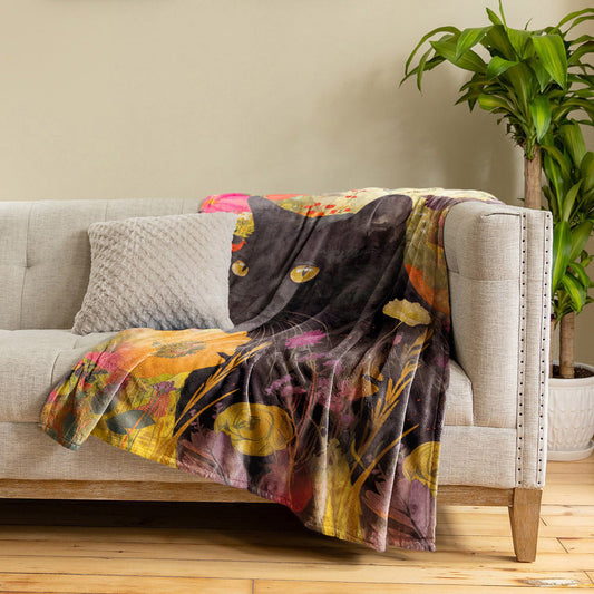 Cat Fabric Shineful Fleece Blanket Cat in Garden