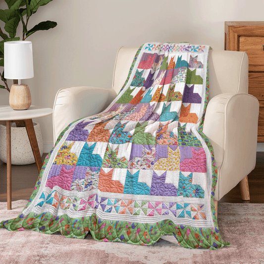 Shineful All Season Quilt 3-Piece Set Whimsical Cat Garden