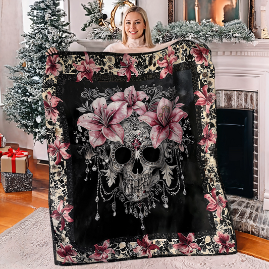Shineful Fleece Blanket Beautiful Sugar Skull With Lilies
