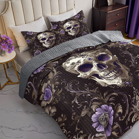 Shineful All Season Quilt 3-Piece Set - Roses & Skulls Elegance