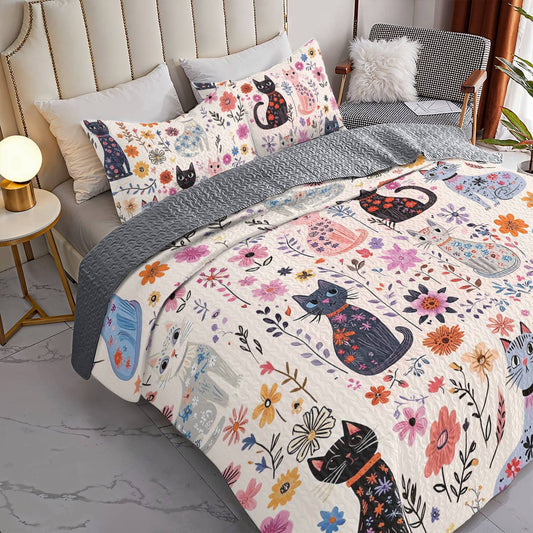 Shineful All Season Quilt 3-Piece Set Catty Blooms