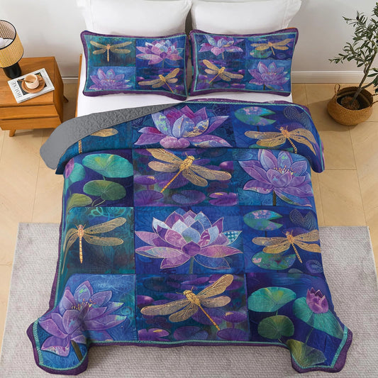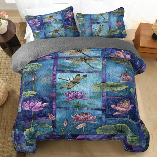 Shineful All Season Quilt 3-Piece Set Enchanted Dragonfly Lotus