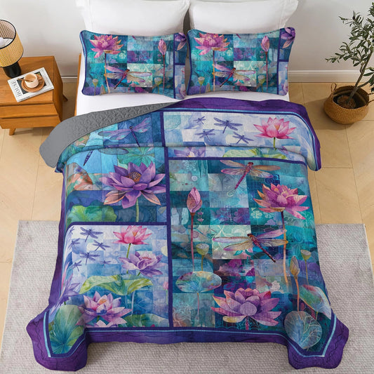 Shineful All Season Quilt 3-Piece Set Lotus Dragonfly Serenity