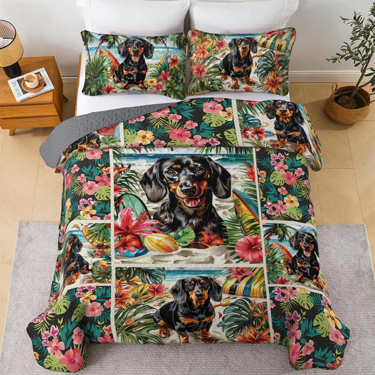 Shineful All Season Quilt 3-Piece Set Beach Dachshund Delight