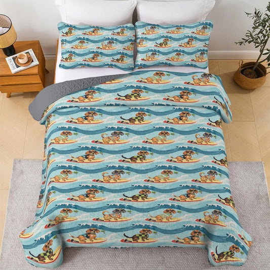 Shineful All Season Quilt 3-Piece Set Dachshund Surfing