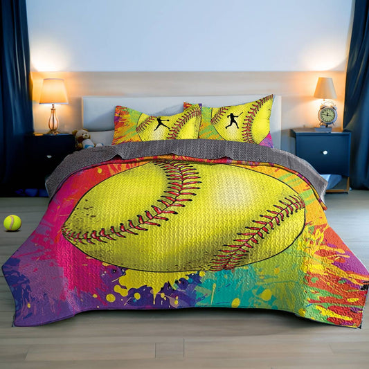 Shineful All Season Quilt 3-Piece Set Colorful Softball Splashing