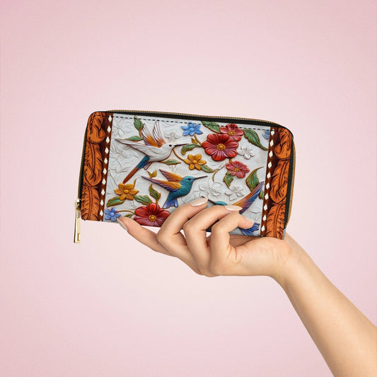 Shineful Leather Clutch Purse With Wristlet Strap Handle Hummingbird Symphony