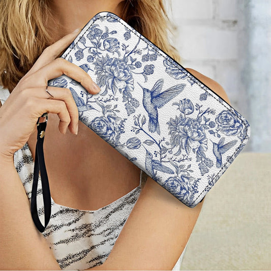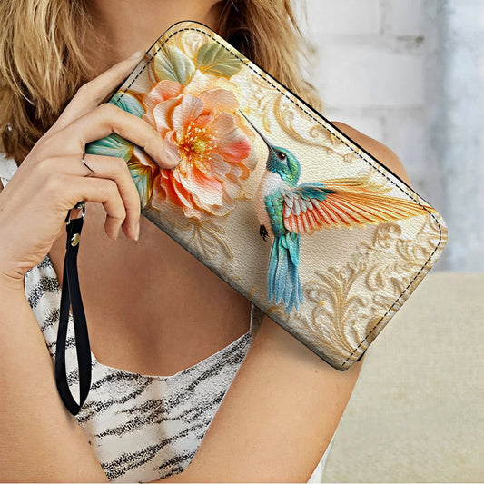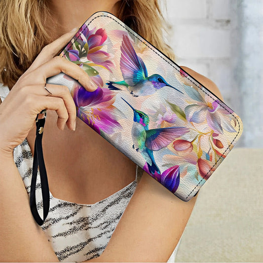 Shineful Leather Clutch Purse With Wristlet Strap Handle Hummingbird Serenity