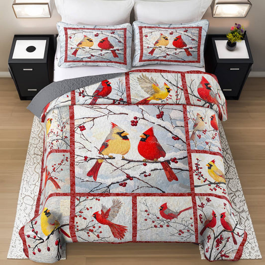 Shineful All Season Quilt 3-Piece Set Elegant Cardinal Love