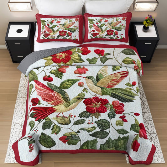 Shineful Flat Print All Season Quilt 3-Piece Set Beautiful Love Hummingbirds