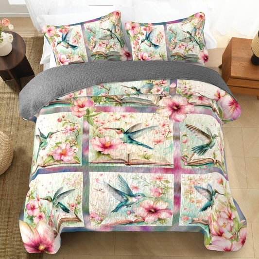 Shineful Flat Print All Season Quilt 3-Piece Set Pretty Love Hummingbirds