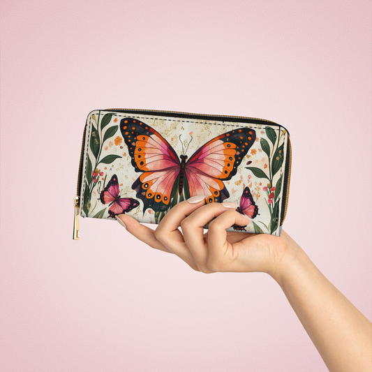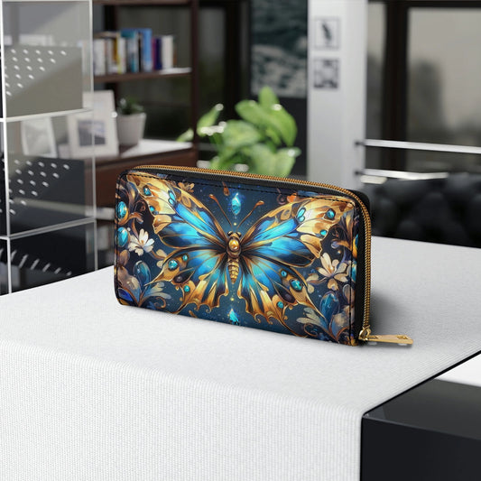 Shineful Leather Clutch Purse With Wristlet Strap Handle Butterfly Ethereal Radiance