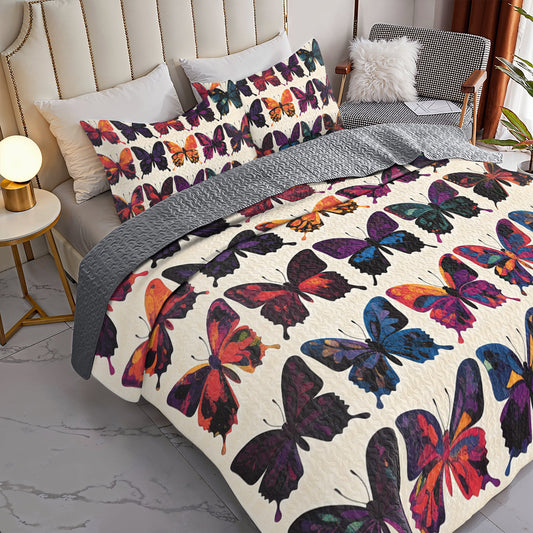 Shineful All Season Quilt 3-Piece Set Vibrant Butterfly