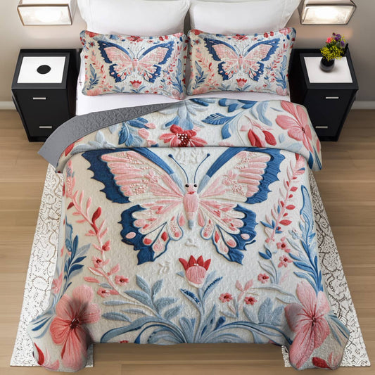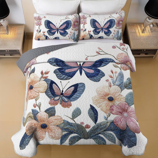 Shineful All Season Quilt 3-Piece Set Gentle Butterflies Flowers