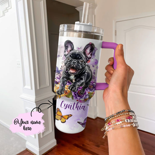 Shineful Tumbler Personalized Frenchie Butterfly Garden