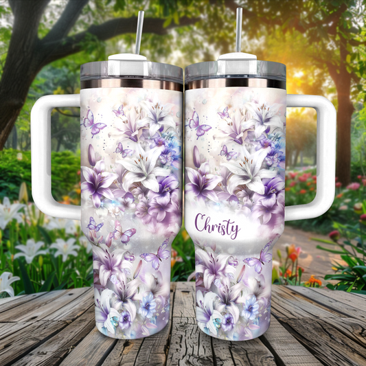 Shineful Glossy Tumbler Floral Hummingbird With Butterflies