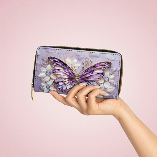 Shineful Leather Clutch Purse With Wristlet Strap Handle Purple Blossom Wings