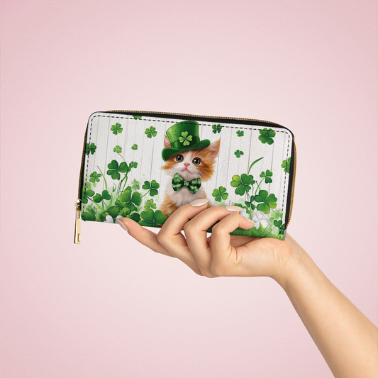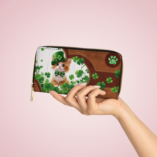 Shineful Leather Clutch Purse With Wristlet Strap Handle Lucky Whiskers