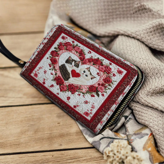 Shineful Leather Clutch Purse With Wristlet Strap Handle Kitten Love Blossom