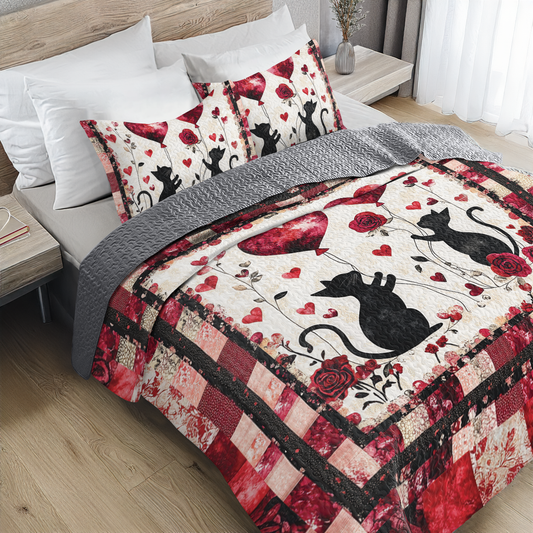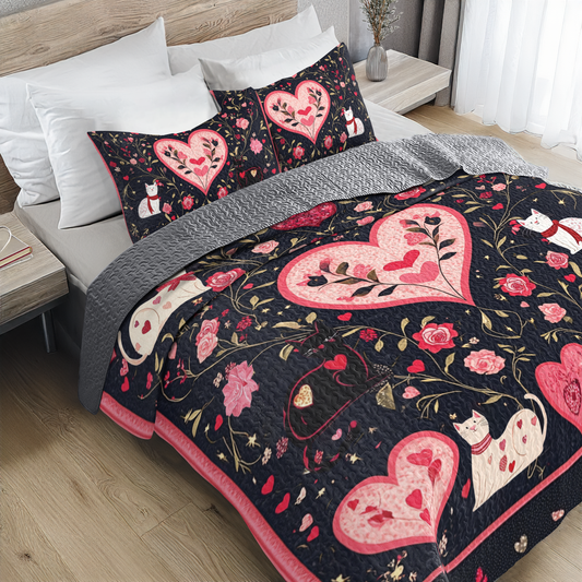 Shineful All Season Quilt 3-Piece Set Lovely Cats Valentine