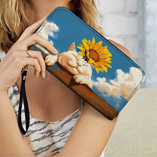 Shineful Leather Clutch Purse With Wristlet Strap Handle Relaxing Cat