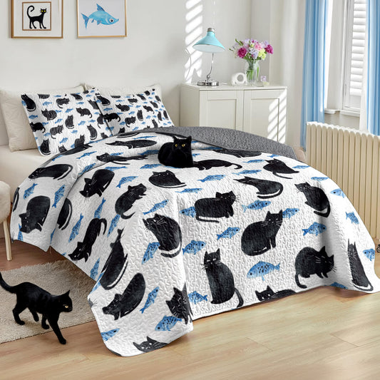 Shineful All Season Quilt 3-Piece Set - Naughty Cat With Fish