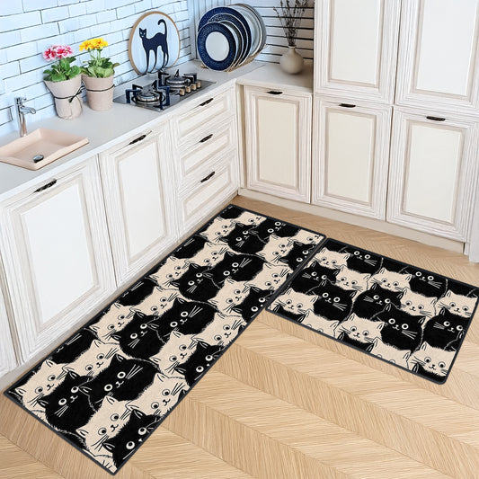Shineful Ultra-Thin Non Skid Floor Mat, Kitchen Rugs Cute Face Cats
